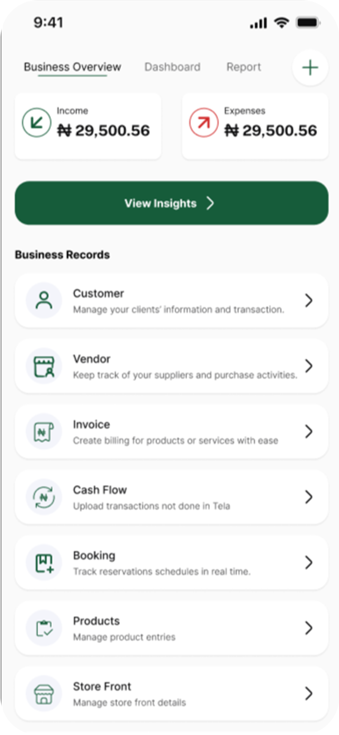 TELA Business is an all-in-one platform designed for small businesses, freelancers, and entrepreneurs. It helps you manage customers, vendors, finances, inventory, bookings, and more — all from one easy-to-use dashboard.